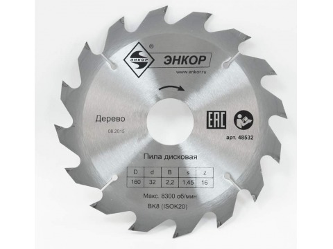 Диск пильный по дереву ф160х32 z16 ЭНКОР 48532