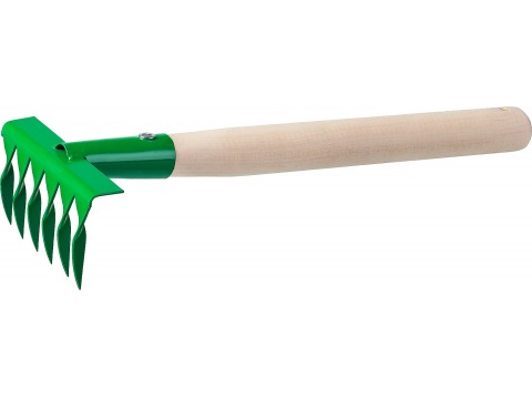 Грабельки садовые с деревянной ручкой, РОСТОК 39611, 6 витых зубцов, 120x62x405 мм