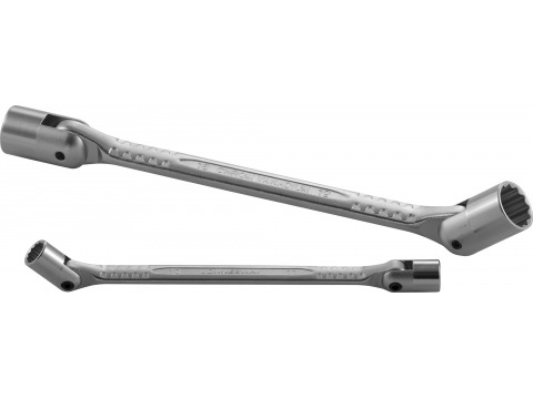 Гаечный ключ, объединяющий в своей конструкции вороток, удлинитель с шарниром и торцевой головкой. Используется, в основном, при массовом производстве и применении на однотипных или сопредельных по размерам крепежах вместо сборного инструмента. Удобен в ограниченном рабочем пространстве. Ключ изготовлен из хромованадиевой стали, закален, имеет хромоникелевое покрытие.