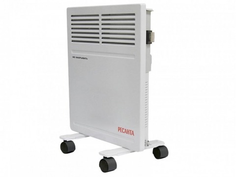 Электрический конвектор РЕСАНТА ОК-500 для обогрева помещений. Состоит из нагревательной части (ТЭН), заключенной в нижней части корпуса со щелеобразными отверстиями снизу и жалюзи в верхней части. Данная конструкция даёт возможность воздуху беспрепятственно проходить внутри конвектора,