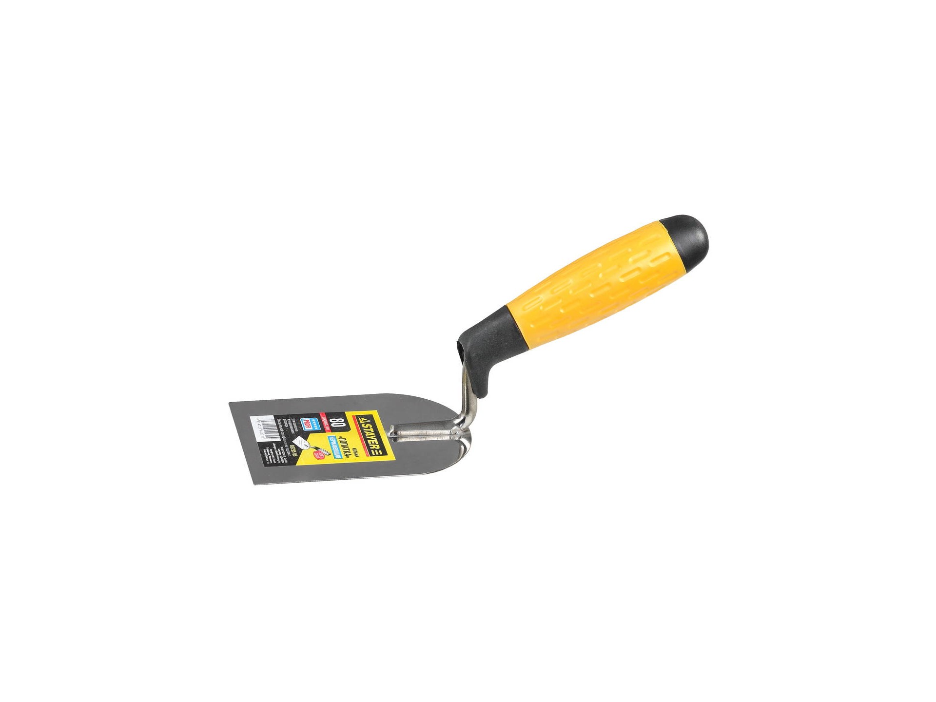 кельма используется для нанесения строительных растворов, нержавеющее стальное полотно обеспечивает прочность конструкции, а двухкомпонентная ручка удобство в работе
