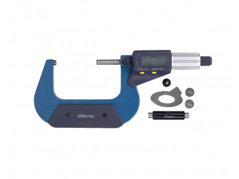 Микрометр МКЦ-75 0.001 предназначен для измерения наружных размеров изделий. Микрометр оснащен электронным цифровым отсчетным устройством, более удобным и быстрым при считывании показаний, а также позволяющим проводить относительные измерения за счет установки «0» на любом размере в диапазоне измерений. Функции электронного блока: кнопочное управление, метрическая и дюймовая система исчисления, кнопка выключения/автоматическое отключение, установка абсолютного нуля, абсолютные и относительные измерения, установка пределов допуска и классифицированное измерение, функция удержания данных на экране, разъем для вывода данных. Измерительные поверхности микрометра оснащены твердым сплавом. Укомплектован установочной мерой (свыше 25 мм)/двумя (свыше 300 мм). Цена деления 0,001 мм/0,00005