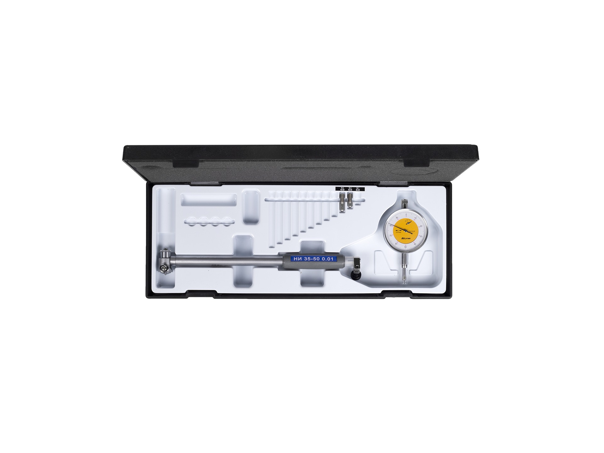 Нутромеры индикаторные НИ 35-50 0.01 МИКРОН используют для измерений размеров изделий внутри полостей, пазов и отверстий, где рулетка или линейка не дают точных результатов. В процессе использования инструмента применяют относительный метод, который предполагает контакт с измеряемой поверхностью в двух точках. В качестве отсчетного устройства в конструкции нутромера используют индикатор часового типа. Для выполнения измерений в одном из диапазонов, нутромер подлежит настройке с помощью комплекта специальных сменных стержней. Кроме этого используют аттестованные блоки концевых мер длины и кольца. Нутромеры индикаторные НИ 35-50 0.01 МИКРОН внесены в Государственный реестр средств измерений, что позволяет использовать его при выполнении экспертизы. Простое и удобное применение обеспечивает высокую популярность этого инструмента среди многочисленных пользователей.