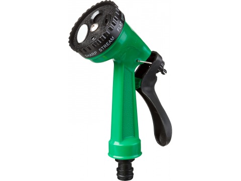 Возможность выбора 1 из 5 режимов полива - душ, жесткая струя, плоская струя, полный круг, мягкое распыление - позволяет легко и быстро осуществить бережный полив любых садовых культур.